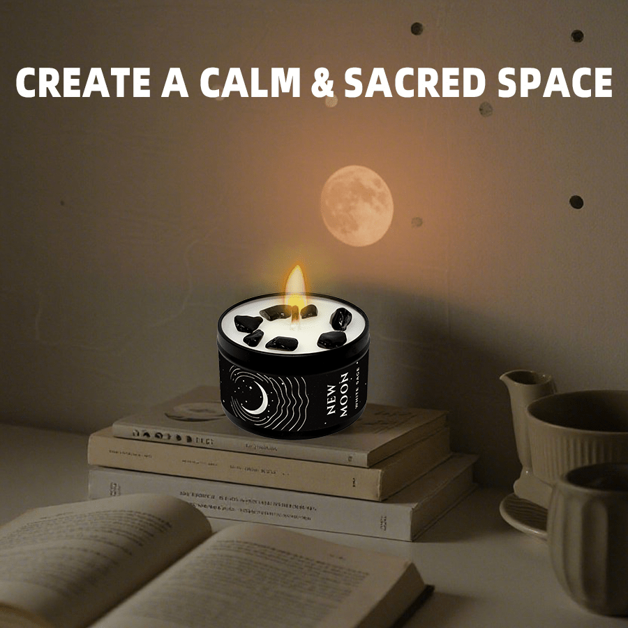 Step into a space of renewal and intention with the New Moon Crystal Candle, a handcrafted blend of spiritual symbolism, calming fragrance, and elegant design. Inspired by the energy of the new moon phase, this candle is perfect for those seeking clarity, fresh starts, and emotional grounding.